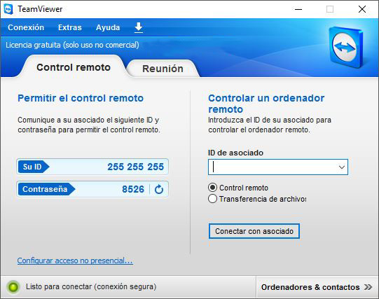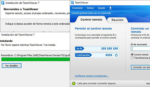 Infórmenos el número de “ID” y la “Contraseña” generada aleatoriamente por el programa de soporte remoto. Aguarde a que nos conectemos remotamente a su equipo. No use el ratón y teclado mientras lo asistimos.
