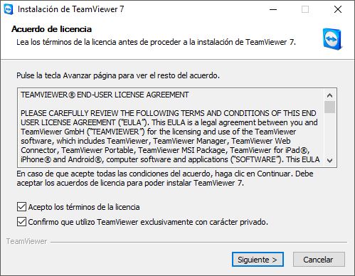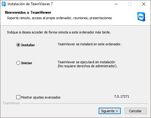 Haga click sobre “Iniciar Descarga” y al finalizar la misma ejecute el programa de instalación “TeamViewer_Setup 7.0.17271.0.exe”.
